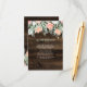 These rustic and trendy wedding guest detail cards feature watercolor flowers and leaves in soft shades of blush pink, peach, white, and blue, with a modern accent of faux gold dots, on a brown wood look background. You can use these cards to include information about your wedding reception, driving directions, accommodations, and anything else you need your guests to know.