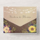 Announce your big day in style with this elegant rustic wood all-in-one wedding invitation. Featuring watercolor florals, vibrant sunflowers, and romantic string lights, this design blends modern charm with rustic warmth. The back includes space for your custom photo, making it a personal keepsake for your guests. Perfect for fall, barn, or outdoor weddings, it includes your wedding details and built-in RSVP for easy planning.