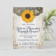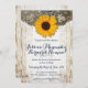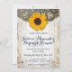 Rustic Floral Sunflower Wedding Invitation. This creative wedding invitation features w white wood background that looks whitewashed. The top holds burlap lace elements with a yellow sunflower in the centre and faux metal bead embellishments with pearls in the lace. Great for country weddings, outdoor weddings and spring, summer and fall seasonal weddings.