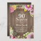 Rustic Floral Surprise 90th Birthday Invitation