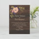 Elegant, country, barn wood wedding invitation with rustic watercolor blush pink flowers and gold foil back side. Perfect choice for modern and romantic brides!