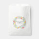 This design features a rustic floral watercolor wreath. The beautiful greenery and pink, green, purple, pink, red, orange, blue and yellow flowers combine to create a rustic elegant wreath that surrounds some of the wording text. The elegant watercolor flowers are arranged around the bride's and groom's names. The use of classy typography for the wording text compliments the design. This design is ideal for any wedding theme. The perfect wedding favour bag design for all seasons. Matching wedding invitations and other stationery items are also available.