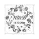 Beautiful personalized rustic wreath with monograms and wedding date pre inked stamp. This elegant custom wedding stamp is decorated with a pretty round wreath made of casually arranged flowers, leaves and flower buds. The design includes monograms and wedding date printed in the centre.