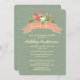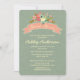 Rustic Flowers | Bridal Shower Invitation by Elke Clarke Designs © Pretty hand drawn flowers in peach, coral, pink, mint green, yellow, green and cream and a coral pink banner with the words "bridal shower" in trendy written script typography. Vintage mint green kraft paper background is a photo effect is printed on the basic paper stock as shown or choose other paper options. Other colours available.
