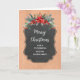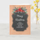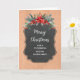 Merry Christmas for cousin and his family card with rustic country design, vintage paper pattern and winter foliage with poinsettias.