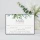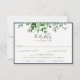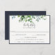 Rustic Forest Foliage, wedding RSVP cards with meal choice option. Design features delicate watercolor greenery in shades of green and blue, navy blue colour backing and border frame. Modern and elegant typography design style template.