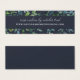 Rustic green and blue watercolor forest foliage, wedding website rsvp mini card. Background colors shown in navy blue.