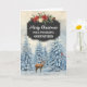 Merry Christmas for godfather card with rustic country chalkboard pattern and snowy watercolor forest scene with deer and birds.