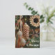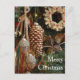 A photo of a rustic theme Christmas tree with acorn, pine cone, wreath and star ornaments. The colours are rich beautiful tones of gold, brown and bronze. The front says Merry Christmas and the inside says Wishing you much joy and happiness this Christmas season. Personalize the front and inside with your own message if desired. This holiday ornament card is great for conveying the festivity of Christmas. They can also be used for an ornament exchange party.