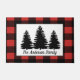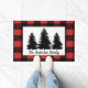 Rustic black forest trees silhouette black and white buffalo check plaid doormat. This mat can be personalized with your family's name!