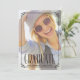 This lovely photo graduation party invitation features a rustic frame and the word "Graduate" in a whimsical font, overlaying a full-bleed photo of the new graduate. Back of card includes space for graduate's name and graduation party details against a black background.