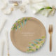 Rustic fresh meadow leaves paper plate featuring delicate shades of green watercolour foliage, framing your personalised message. Perfect for weddings, bridal showers, baby showers, engagement parties anniversary celebrations and birthday get-togethers. Designed by Thisisnotme©