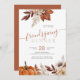 Modern burnt orange terracotta autumn fall floral botanical and pumpkin rustic chic Friendsgiving Thanksgiving Dinner invitation with a trendy handwriting calligraphy script.