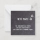 Personalize with names and your new address. This dog moving announcement is a must for all dog moms, dog dads and dog lovers! COPYRIGHT © 2020 Judy Burrows, Black Dog Art - All Rights Reserved. Rustic Funny We've Moved Dog Moving Announcement Notecard