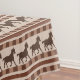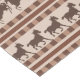 This bold pattern showcases galloping horse silhouettes in rich brown tones, arranged in repeating horizontal rows. The design is accented with chequerboard-style borders and alternating stripes in warm shades of tan, beige, and chestnut. The dynamic horse figures capture movement and energy, while the structured stripe layout adds rhythm and balance. With its earthy palette and rustic charm, this design blends western-inspired themes with classic folk-art styling, making it a striking choice for lovers of equestrian and country motifs.