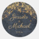 Rustic Glam Navy Blue Gold Script Wedding Classic Round Sticker