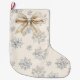 Rustic Glitzy Cream Bows Christmas Large Christmas Stocking