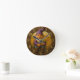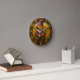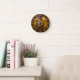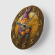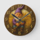 Rustic gnome harvest with golden wheat accents round clock