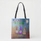This fun tote bag is just perfect for trick or treating on Halloween. There are 3 Gnomes dressed in orange, purple with a candy pieces pattern and black with orange pumpkins pattern. Background is a beautiful rustic watercolor, faux textured fabric. There is a full moon in the sky and two bats flying about in the moonlight. Below the gnomes you put your name using the easy template found under "personalize this template. Design is on both sides. This tote bag is perfect for young kids on up to adults!