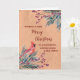 Merry Christmas for goddaughter and her family card with rustic watercolor greenery and cardinal and vintage paper pattern.