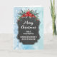 Merry Christmas for goddaughter and her husband card with rustic country chalkboard pattern and winter foliage with poinsettias.