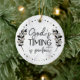 Rustic God's Timing Is Perfect Beige Black Leaves Ceramic Ornament