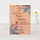 Merry Christmas for godson and his family card with rustic watercolor greenery and cardinal and vintage paper pattern.