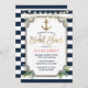 Nautical Gold Anchor Navy Blue White Stripes Bridal Shower Invitations.