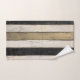 Bring a cozy, rustic touch to your bathroom with this rustic gold, black, and cream farmhouse barnwood stripe towel set. Featuring a classic striped design inspired by weathered wood textures, this set blends warm neutral tones with subtle patterning to create a welcoming and stylish atmosphere. The combination of gold, black, and cream offers a versatile palette that complements both modern and farmhouse-inspired interiors.