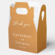 This rustic gold wedding favour box features elegant white typography overlaid on an understated earth tone gradient. Simple light orange and brown hues follow the current fall trends for a bohemian wedding this autumn. Complete the look with your minimalist script over the colour fade.