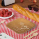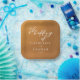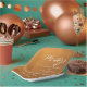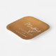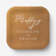 This rustic gold wedding paper plate features elegant white typography overlaid on an understated earth tone gradient. Simple light orange and brown hues follow the current fall trends for a bohemian wedding reception this autumn. Complete the look with your minimalist script over the colour fade.