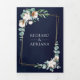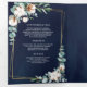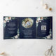 Rustic Gold Cotton Eucalyptus QR Code Navy Wedding Tri-Fold Invitation