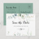 This rustic gold floral horizontal save the date postcard is perfect for a simple wedding. This artistic design features hand-drawn gold floral and watercolor eucalyptus green foliage, inspiring natural beauty.