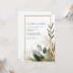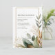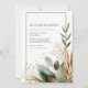 Invite your guests with a sense of natural, understated elegance using this minimalist rustic wedding invitation. The design is anchored by a clean, vertical white background, maximizing the simplicity and focus on the natural elements. A thin, dazzling faux gold glitter rectangular frame provides a chic and elegant boundary for your text. The highlight of the design is the watercolor greenery, concentrated primarily in the lower corner and trailing up one side. The foliage features a beautiful, muted colour palette, ranging from dusty sage green leaves and deep eucalyptus tones to warm terracotta and burnt orange accents, suggesting a fall or bohemian theme. Delicate gold botanical sprigs and painterly green splatter dots add texture and sparkle to the natural composition. This boho garden style is perfect for couples planning an outdoor ceremony, a rustic barn wedding, or any event embracing earthy, organic sophistication. This design is perfect for rustic wedding invitations, bohemian bridal shower announcements, earthy fall event invites, or an elegant rehearsal dinner stationery. This beautiful design can also be easily adapted for use as corporate event announcements, milestone birthday party invitations, or elegant menu cards for any catered affair.