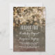 The rustic barn wood and the romantic gold glitter string lights engagement party invitations.