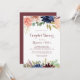 This rustic gold leaves calligraphy couples shower invitation is perfect for a modern wedding shower. The design features hand-drawn watercolor purple, navy, blush, burgundy, navy flowers, green and gold leaves.