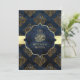 Rustic Gold Navy Blue Damask Muslim Wedding Invitation