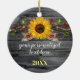 Rustic Gold Red Wood Name Sunflower Christmas Ceramic Ornament