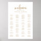 This rustic gold script alphabetical seating chart poster is perfect for a country wedding. This sign can be used to organize your guests alphabetically or by table number by changing the names of the headings. The simple and modern gold and white design features unique whimsical handwritten calligraphy lettering with a contemporary minimalist boho style. Customizable in any colour. Keep the design minimal and simplistic, as is, or personalize it by adding your own graphics and artwork. This wedding poster includes enough room for up to about 120 guests. Make room for more (or less) guests by clicking the "customize" button and decrease or increase the size of the font. In addition to the placement of each guest, personalize this sign with the names of the bride and groom and the wedding date.