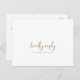 This rustic gold script menu choice RSVP postcard is perfect for a country wedding. The simple and modern gold and white design features unique whimsical handwritten calligraphy lettering with a contemporary minimalist boho style. Customizable in any colour. Keep the design minimal and simplistic, as is, or personalize it by adding your own graphics and artwork. This wedding response postcard conveniently asks guests what meal they would like at your reception.