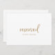 This rustic gold script reserved sign is perfect for a country wedding. The card is double sided (prints on both sides). The simple and modern gold and white design features unique whimsical handwritten calligraphy lettering with a contemporary minimalist boho style. Customizable in any colour. Keep the design minimal and simplistic, as is, or personalize it by adding your own graphics and artwork. Use these cards to reserve chairs or tables at your wedding ceremony, reception or any event.