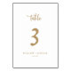 This rustic gold script table number is perfect for a country wedding. The simple and modern gold and white design features unique whimsical handwritten calligraphy lettering with a contemporary minimalist boho style. Customizable in any colour. Keep the design minimal and simplistic, as is, or personalize it by adding your own graphics and artwork. The card prints on the front and back (double-sided). Items are printed exactly as they appear on your screen when you add to cart, so personalize and add each table number that you need to your cart individually.