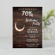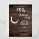 Rustic Gold Wine Glass Wood 70th Birthday Foil Invitation. Birthday invitation with a classic wine glass in gold foil on dark rustic wood background - you can change the glass to silver foil or gold foil. Perfect for a man or woman who is celebrating the seventieth birthday.