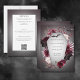 THIS IS AN ALL IN ONE INVITATION WITH DETAILS ON THE BACK. Step into a realm of dark romance with our exquisite gothic or Halloween wedding invitation that seamlessly blends rustic elegance with a touch of eerie allure. Adorned with intricate pink, burgundy, and black florals, this invitation is a mesmerizing masterpiece that captures the essence of your unique love story. Against a backdrop of burgundy and black distressed hues, the design takes a bewitching turn, featuring captivating details like delicate spiders, mysterious coffins, intricate webs, and soaring bats that dance across the invitation. This enchanting ensemble balances the beauty of florals with the intrigue of gothic elements, creating an invitation that's as unforgettable as your love. Unveil your celebration in style and embrace the extraordinary with an invitation that speaks to the heart of your gothic-themed event. Let every recipient experience the magic of your union from the very first glimpse. Choose our Gothic Wedding Invitation to set the stage for a day that's as enchanting as it is haunting, capturing the attention and imagination of all who receive it. Created by Simply Farmhouse Press.