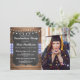 Rustic Graduation Party Blue Check Chalk BBQ Photo Invitation