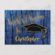 Give your guests at your graduation party the opportunity to express their words of wisdom or advice for the graduate. Stylish blue rustic wood pattern with a graduation cap and tassel. Create your own monogram graduation well wishes card simply by adding your grads name.