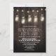 Rustic Grange Bois Mason Jar Mariage Invitations - parfait pour les mariages d'été, d'automne, de printemps ou d'hiver - toute saison est appropriée. Si vous avez une luciole, un mariage à thème champêtre ou rustique avec des bocaux de mason et des cordes de lumières, ce design a ce dont vous avez besoin. Le design se caractérise par le bois de grange récupéré comme l'arrière - plan et la pendaison de jarres de maçon éclairées avec des lucioles ou juste des lumières simples. Les jarres de mason sont enfilées sur des lampes à cordes.