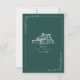 Mariage RSVP avec illustration de grange avec bordure botanique. L'Arrière - plan est vert émeraude.