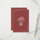 Mariage RSVP avec illustration de grange rustique avec bordure botanique. L'Arrière - plan est rouge muet. Personnalisez le texte et le code QR.