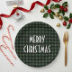 Rustic Green & Black Buffalo Plaid Merry Christmas Paper Plate